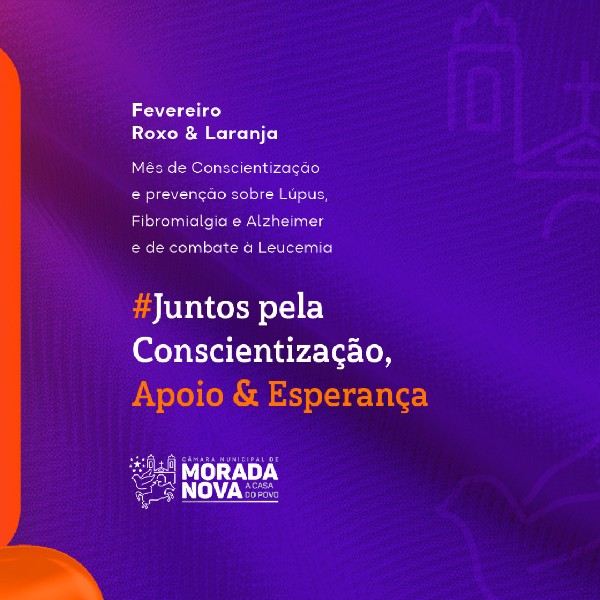 A Câmara Municipal de Morada Nova apoia as campanhas de conscientização contra doenças raras, fibromialgia e leucemia (Fevereiro Roxo) e de prevenção à violência infantil (Fevereiro Laranja).